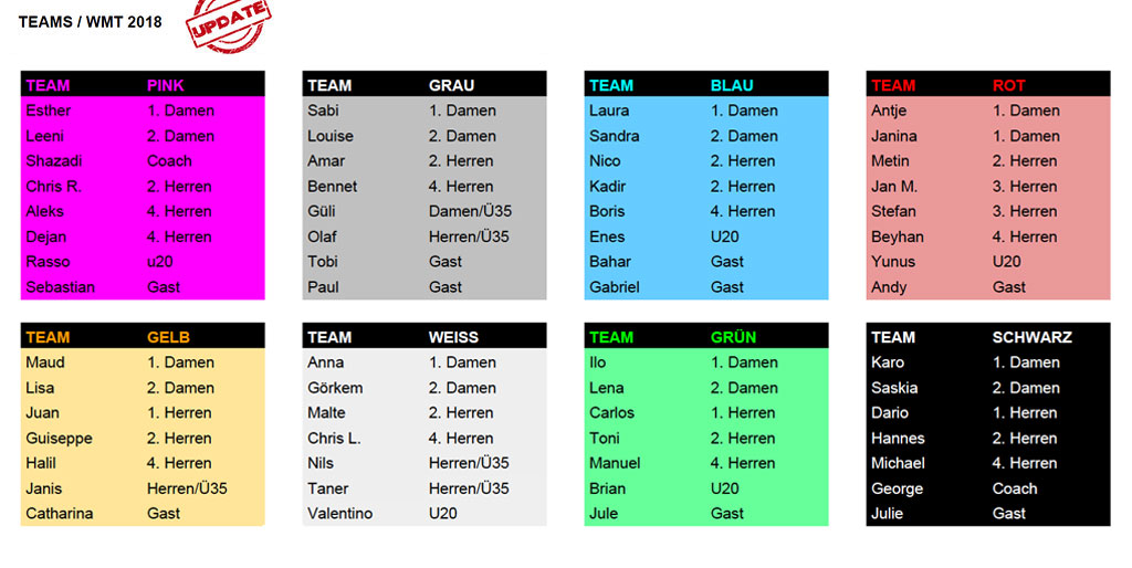 Bitte bringt ein Trikot/Shirt ein Eurer Teamfarbe mit!