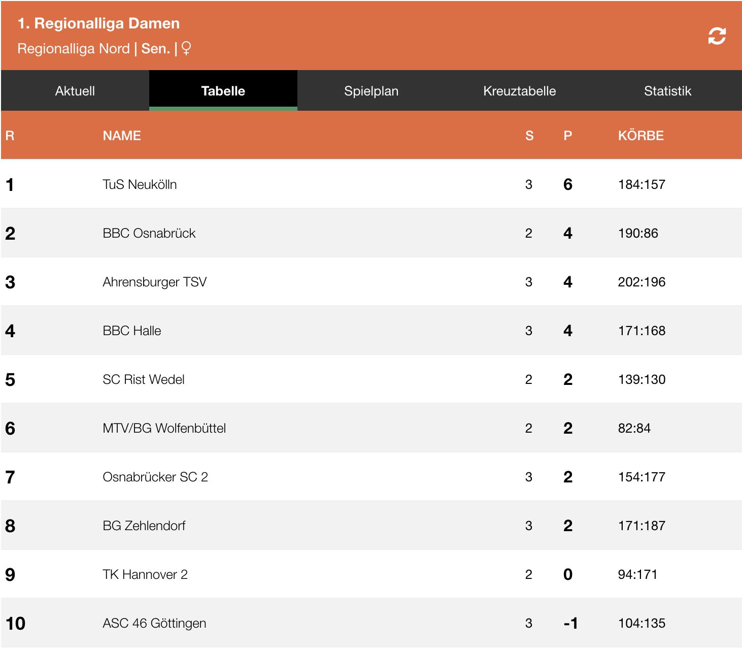 Nach einem erneuten Sieg der Neuköllnerinnen in der Heimhalle von Rist Wedel spricht die Tabelle unten für sich. Die Reise war intensiv und lang. Am Sonntag, den 9.10.22 ging es wieder zeitig los in den schönen Norden und nach einem Manko an Treffsicherheit der Risterinnen bezwang man den dritten Gegner mit einem 65:60. Die Reise bleibt ein erneutes Highlight in der Bilanz der Damen.