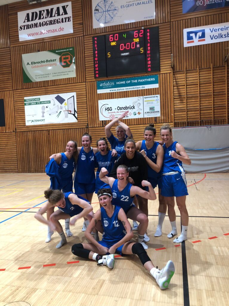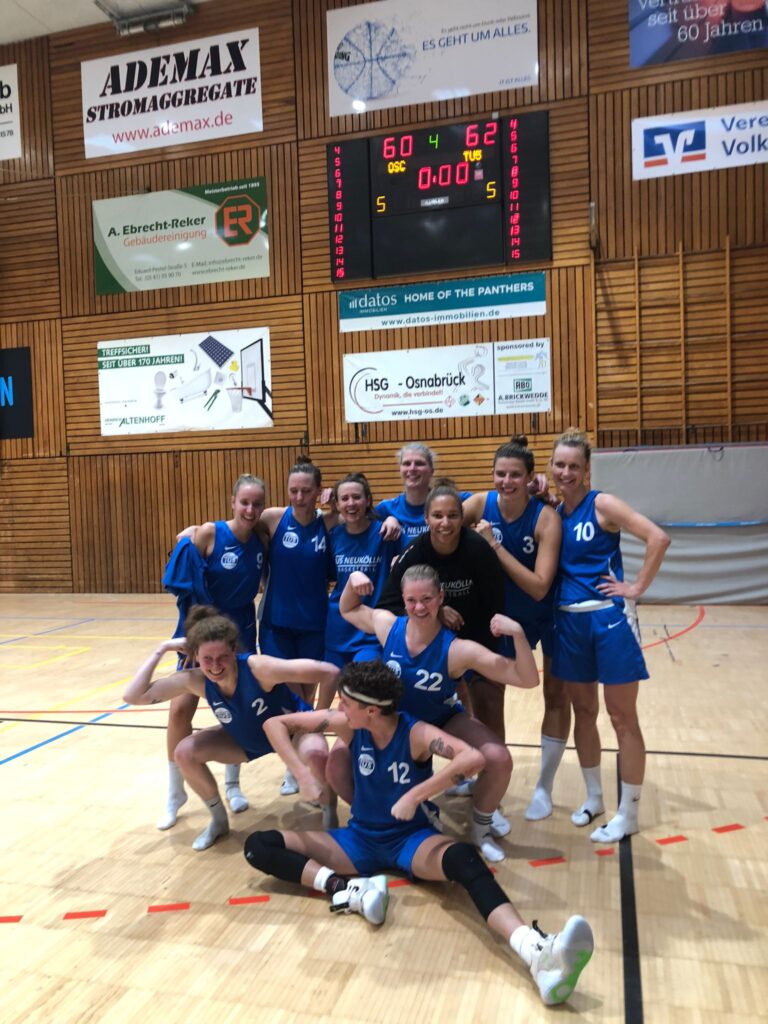 Anfänglich zeigen die jungen OSClerinnen, dass sie Druck in der Defense machen und souverän Dreier einstreuen können. So brauchten wir etwas Zeit und viel Geduld, um uns an die Härte und unsere neue Zusammensetzung zu gewöhnen. Doch „mühselig ernährt sich das Eichhörnchen“ – Step by Step sorgen wir für den Ausgleich zu Beginn des zweiten Viertels. Viele Defense-Stops und erfolgreich ausgespielte Plays sorgen für eine stabile Führung bis zur Halbzeit. . Das immer verhexte Dritte Viertel war wie immer – verhext. Ärgerliche Ballverluste führen dazu, dass der Vorsprung leise dahin schmilzt. Die OSClerinnen verwerten unsere Fehler gut, schwierige Pfiffe seitens der Schieres tun ihr Übriges. Ob die Zuhausegebliebenen das im ruckeligen Live-Stream auch bemerkt haben? So verlieren wir kurz den Fokus aus den Augen, aber auch diese Phase meisteren wir als Team – zusammen. Die TuSlerinnen fighten dann im vierten Viertel und ein wunderschöner Dreier durch Esther bringt uns die Führung! So retten wir uns bis zum Schlusspfiff – Endstand: 60:62.