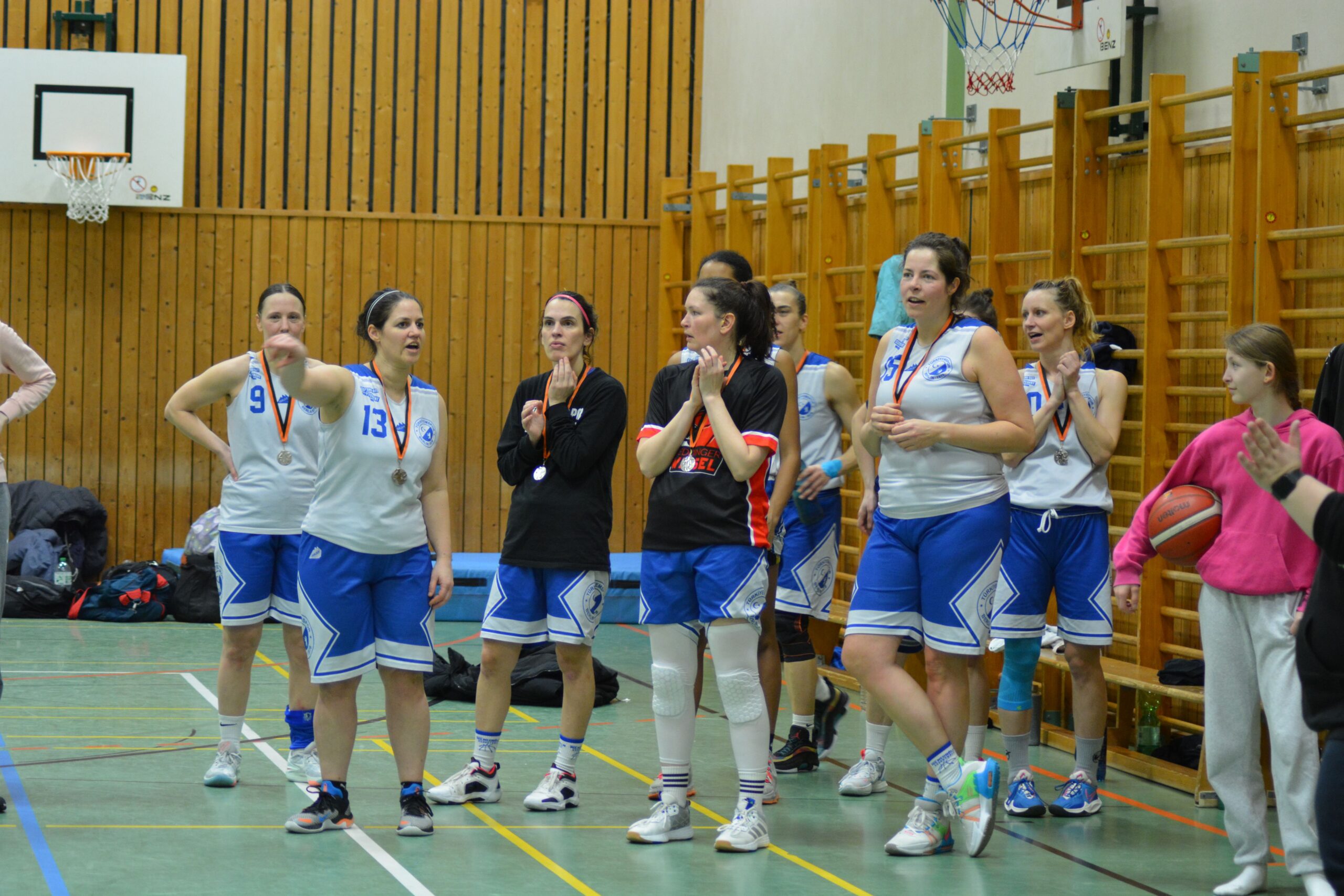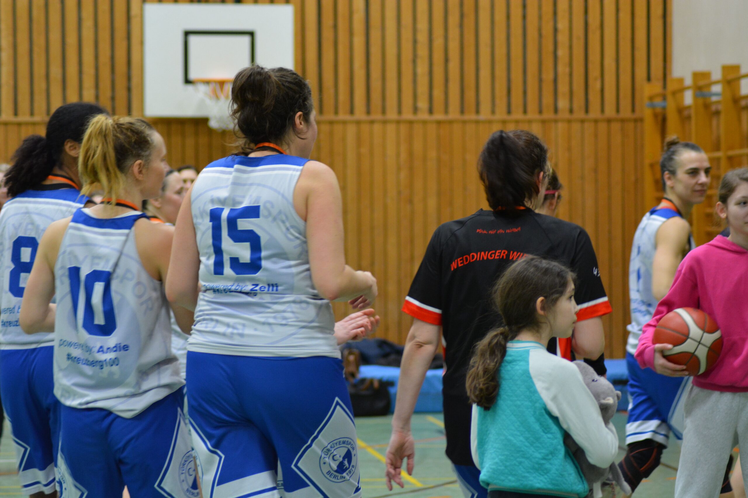 Sonntag! Die Berlinerinnen hatten eine Nacht im Hotel in den Knochen, aber den starken Willen, beide Spiele am Sonntag zu gewinnen, nur so war das feine Silber eine Option. Unterwegs waren bereits die beiden Extra-Damen Jojo und Babs aus Berlin, die für die Sonntagsspiele noch nachreisten und die Truppe mit frischer Energie verstärken wollten. Die Seewölfinnen aus Rostock hatten bereits ein Sonntagspiel in den Beinen, als die Berliner Damen in die Halle kamen, und leider verletzungsbedingt auch nur noch 5 Rostockerinnen auf dem Feld. Somit war alles klar: das Spiel gegen die Seawolves muss besonders schnell werden und die Rotation lies das auch gut zu. Immer wieder Punkte aus Transition und gute Defense unterstützten die Berlinerinnen beim Ausbauen des Abstandes zur Halbzeit und das gaben sie dann auch nicht mehr her. Sieg 2 wurde auf dem Berliner Konto gutgeschrieben.