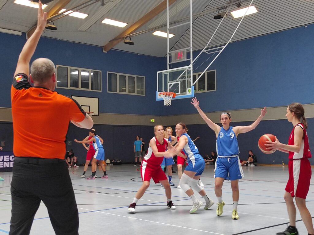 „Oppenheim who?“ – der kleine Ort in Rheinland-Pfalz hat es in sich! Bereits die ersten Minuten gegen das mit ehemaligen Bundesligaspielerinnen gespickte Team zeigten, dass uns ein harter Kampf bevorstand. Kein Team konnte sich zunächst absetzen. Almas Scouting-Report zeigte zur Halbzeit einen knappen Rückstand von 4 Punkten (ab dann brach das Scouting leider ab, wegen „2. Halbzeit hab ich nicht geguckt“). Oppenheim konnte die Führung in den letzten beiden Vierteln auf über 10 Punkte ausbauen. Trotz einer für das Turnier unüblichen Fullcourt-Defense und ein paar erfolgreichen Dreiern kam unsere Aufholjagd zu spät – der Sieg ging verdient an Oppenheim.